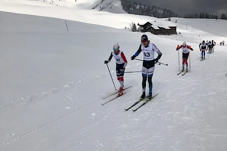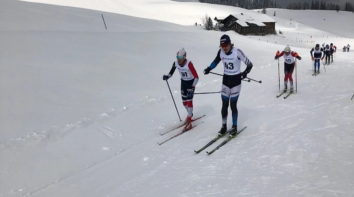 Nach Massenstart ging es in der klassischen Technik durch die wunderbare Landschaft über 8km (Niklas und Samuel) und 11km (Janne). Alle Burschen kämpften mit Bravour gegen Wetter, Strecke und Konkurrenten.